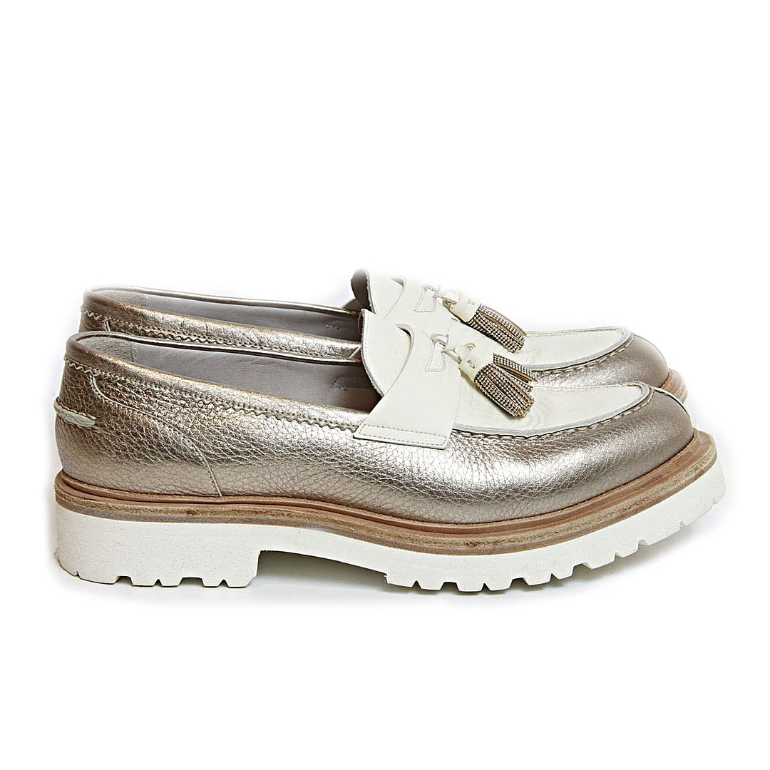 Brunello Cucinelli. Лоферы с кистями, золото-беж купить в Monacomoda